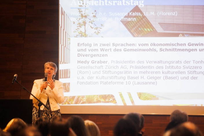 15:40–16:20 | Erfolg in zwei Sprachen: vom ökonomischen Gewinn und vom Wert des Gemeinwohls, Schnittmengen und DivergenzenHedy Graber, Präsidentin des Verwaltungsrats der Tonhalle-Gesellschaft Zürich AG, Präsidentin des Istituto Svizzero (Rom) und Stiftungsrätin in mehreren kulturellen Stiftungen, u.a. der Kulturstiftung Basel H. Geiger (Basel) und der Fondation Plateforme 10 (Lausanne) |